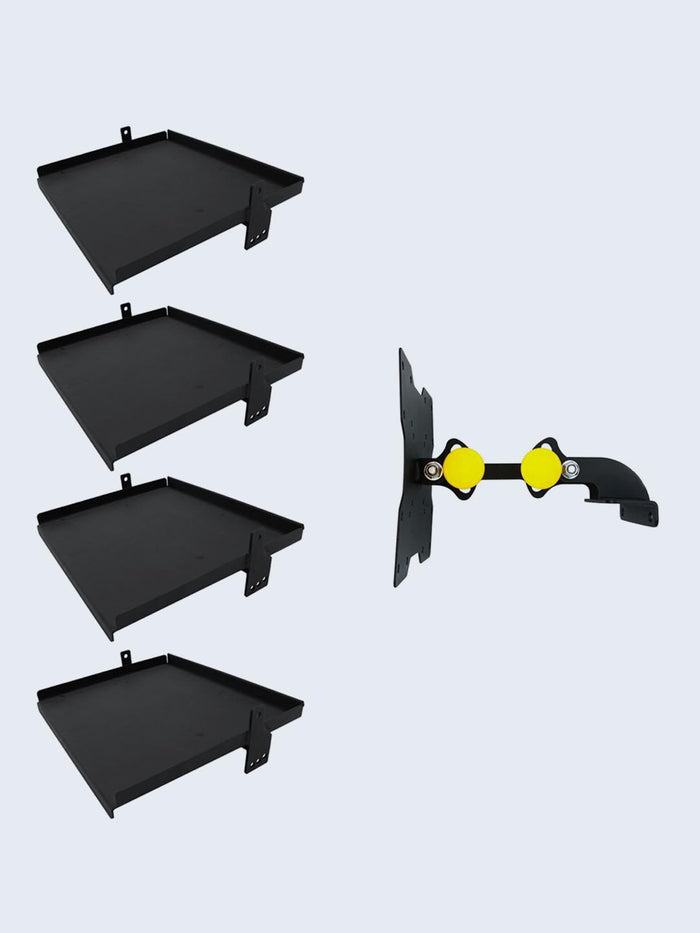 Your G10/G15 All-In-One Trainer was built to move weight. Now, it clears the clutter-without taking up an inch more floor space. Add four heavy-duty, adjustable shelves to the back of the unit-perfect for your attachments, plus kettlebells, dumbbells, or just about anything else crowding your gym and keeping it all within easy reach. Strong. Smart. And surprisingly neat. Now, with bonus TV Mount!