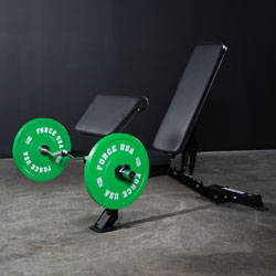 Add a 3-in-1 bench with FID settings plus leg curl, extension, and preacher curl.